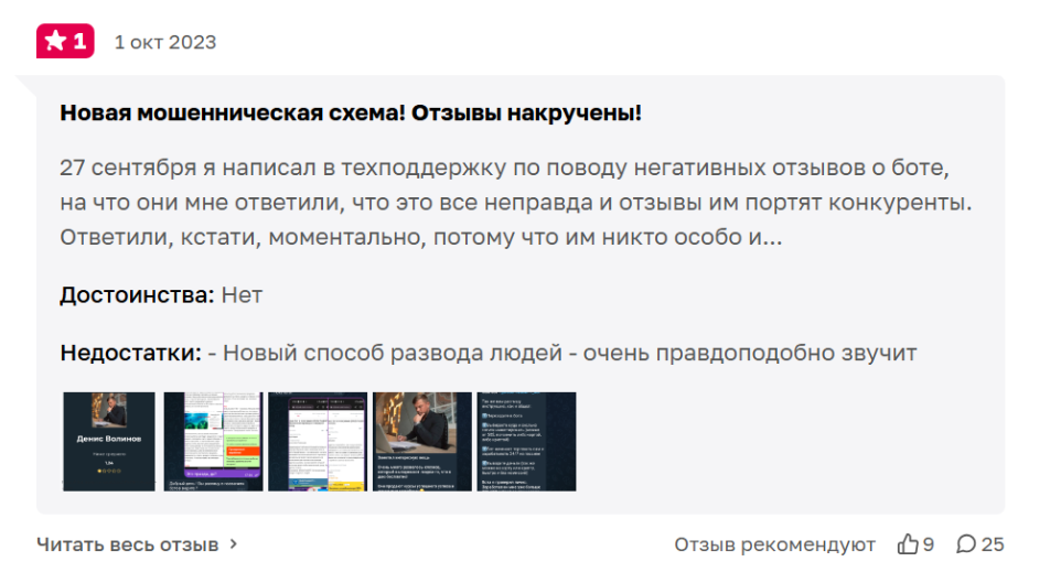 Часто жалуются на задержки и молчание поддержки. Когда человек отказывается платить дальше, бот перестает отвечать или доступ просто блокируют. Те, кто пытался вернуть деньги, пишут, что это не получилось.