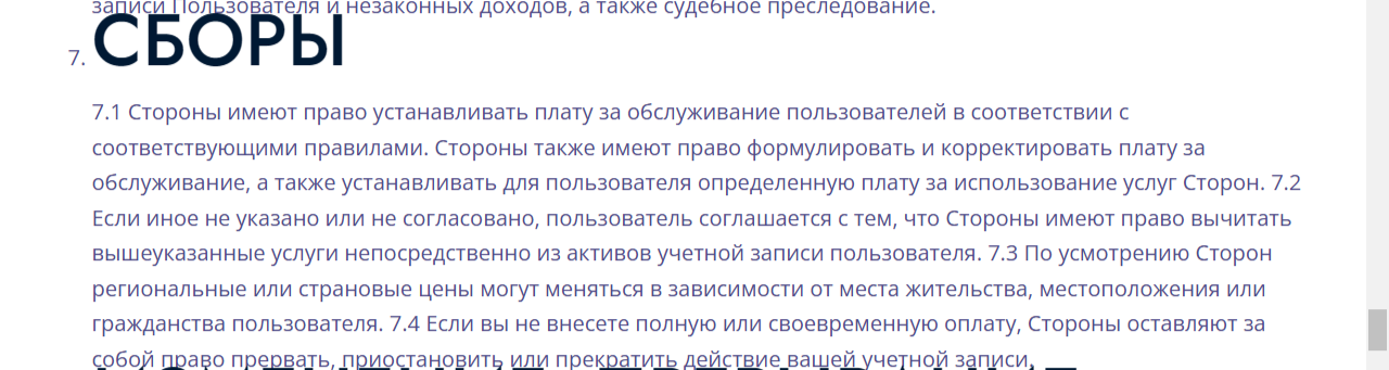 Нигде на сайте не раскрывается информация о финансовой стороне вопроса. Максимум, что удалось отыскать – пункт в разделе «Условия использования». Без каких-либо подробностей создатели кошелька сообщают, что могут менять размер комиссии и самостоятельно забирать оплату со счета клиента.