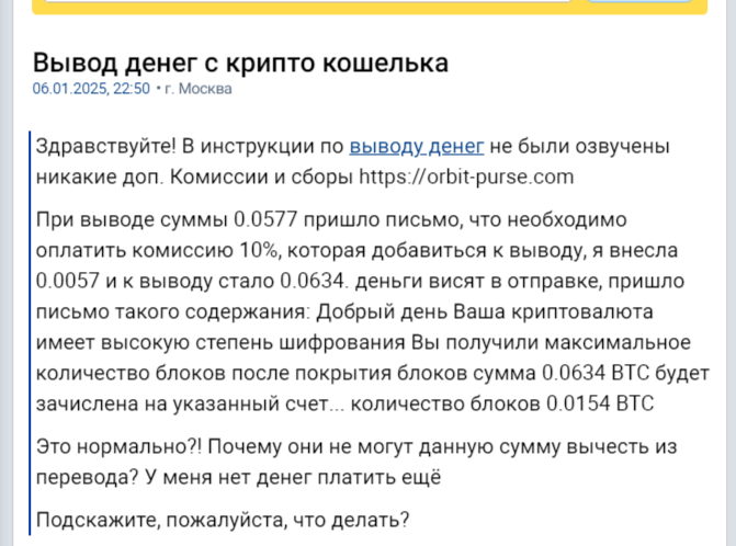 Деятельность криптовалютного кошелька Orbit Purse имеет все признаки мошеннической:
