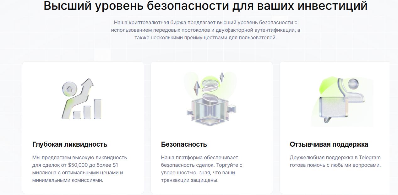 На сайте не объясняют, как проходит проверка пользователей и какие документы нужны для работы. Непонятно, требуют ли они паспорт, проверяют ли адрес или источник средств. Такая непрозрачность увеличивает риски для тех, кто хочет обменять крипту. Пользователи не знают, с кем имеют дело и что будет с их данными.