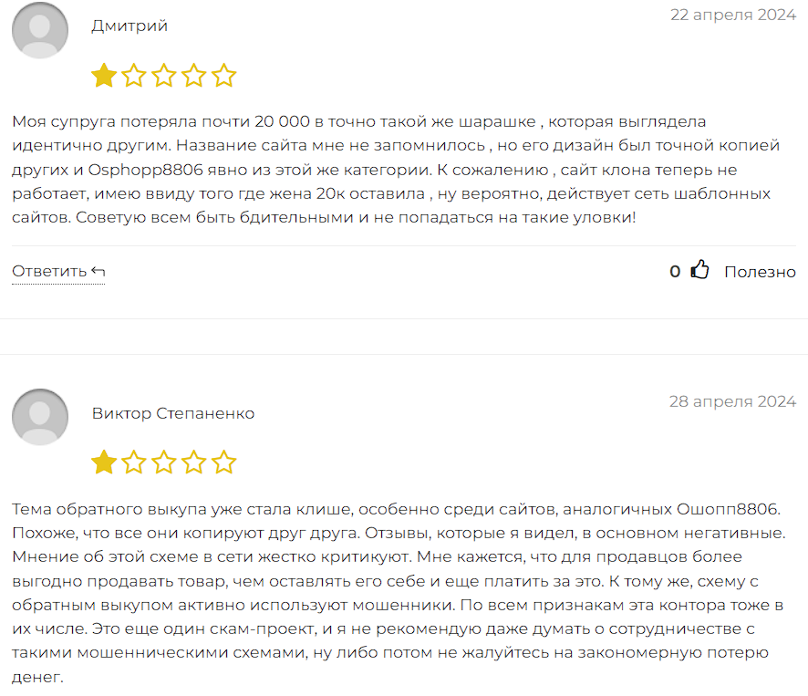 Отзывы об Oshopp8806 com и итоги обзора