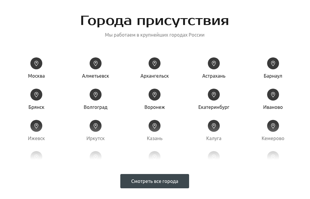 Проверить реальное присутствие в заявленных 63 городах невозможно — список городов и адресов партнерских офисов в открытом доступе не опубликован. Все взаимодействие строится через личный чат с менеджером после прохождения регистрации.