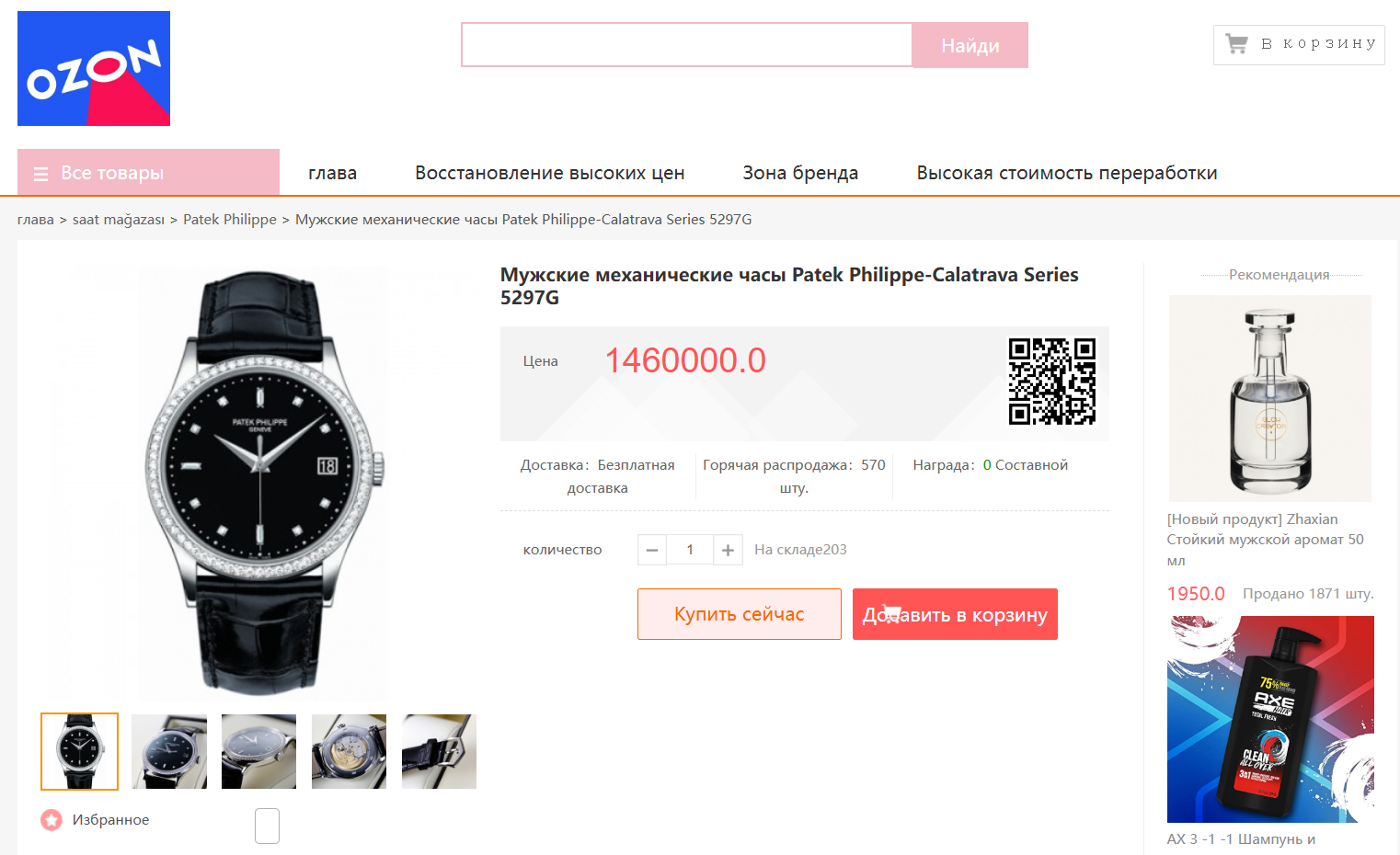 Товары, которые выставлены на сайте «Озон5»: косметика, часы, одежда, аксессуары. Здесь можно найти продукцию и за 500 и за 1,5 миллиона рублей. Такой разброс цен – не случаен, а является частью махинаций, ведь сначала клиентам дают покупать самые дешевые товары, чтобы можно было вывести небольшую сумму для подтверждения надежности. А первое задание для ознакомления с сервисом – вообще бесплатное.