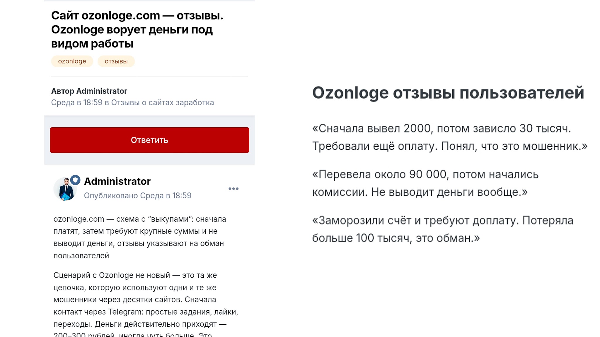 На тематических ресурсах есть отзывы о том, что создатели Ozonloge занимаются мошенничеством.
