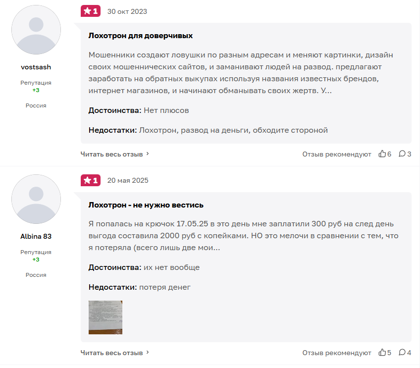 - в интернете можно найти огромное количество разоблачений, в которых такие проекты по заработку на обратных выкупах называют скамом.