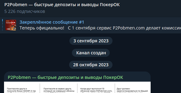 В том же Telegram можно найти канал @ P2Pobmen 1, где довольно активно освещают нововведения на платформе. Активность в сообществе тоже на довольно высоком уровне, но комментарии закрыты, что настораживает.
