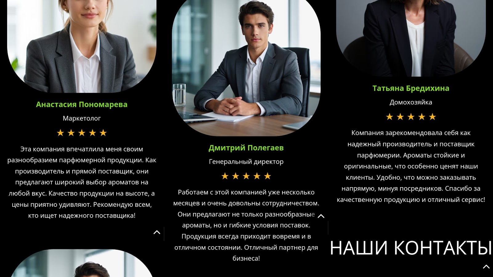 Проект работает через официальный веб-ресурс парфюмир рф. По предоставленной информации, компания функционирует с 2021 года, и базируется в Краснодаре. Основателем выступает Кавинска Ивета. Она является серийным предпринимателем, в 23 года создала свою сеть магазинов. У нее 6 лет опыта в сфере прокатного бизнеса, и получила множество наград. Владелец Parfumir RF зарегистрирована в качестве ИП.