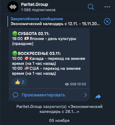 На телеграмм-канал Paritet Group, на 14 ноября 2024-го года, подписано около 1,07 тысяч пользователей. Публикации просматривают в среднем 500 раз.