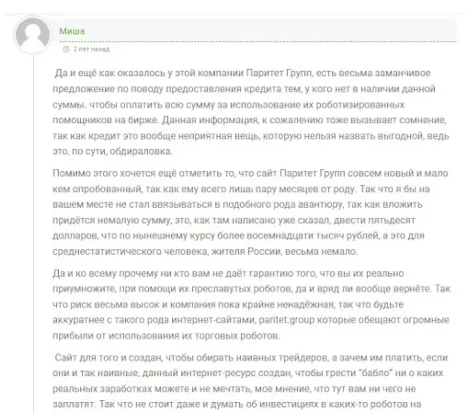 - в интернете много негативных отзывов о «Паритет Групп», в которых компанию называют лохотроном;