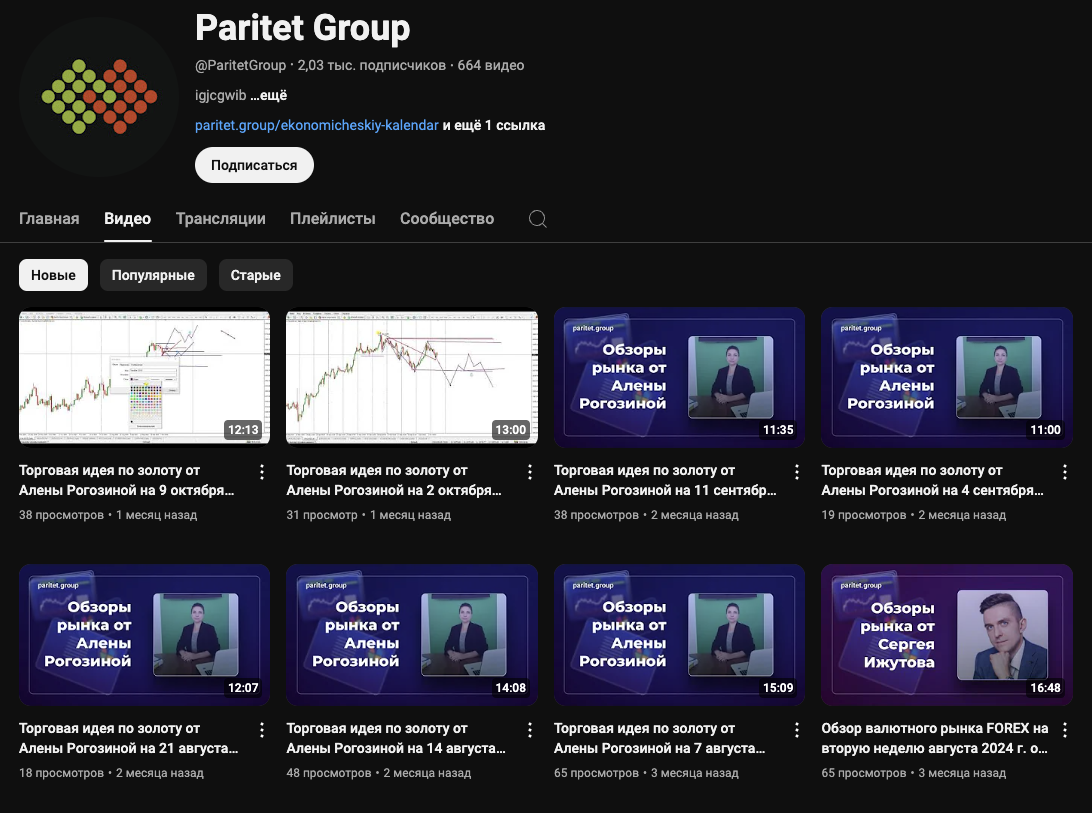 На YouTube-канал ParitetGroup подписано около 2-х тысяч зрителей. Новые видео на канале выходят примерно раз в 1-2 неделю. Они собирают по 20-60 просмотров.