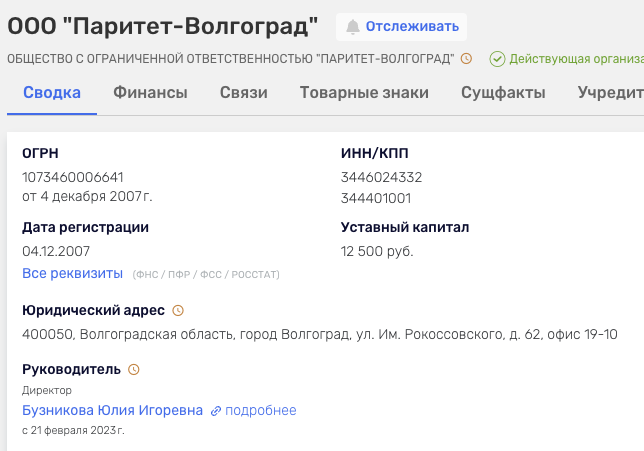 Однако, уставной капитал фирмы составляет всего 12,5 тысяч рублей. Также важно то, что в первой половине 2023-го года компания сменила гендиректора.