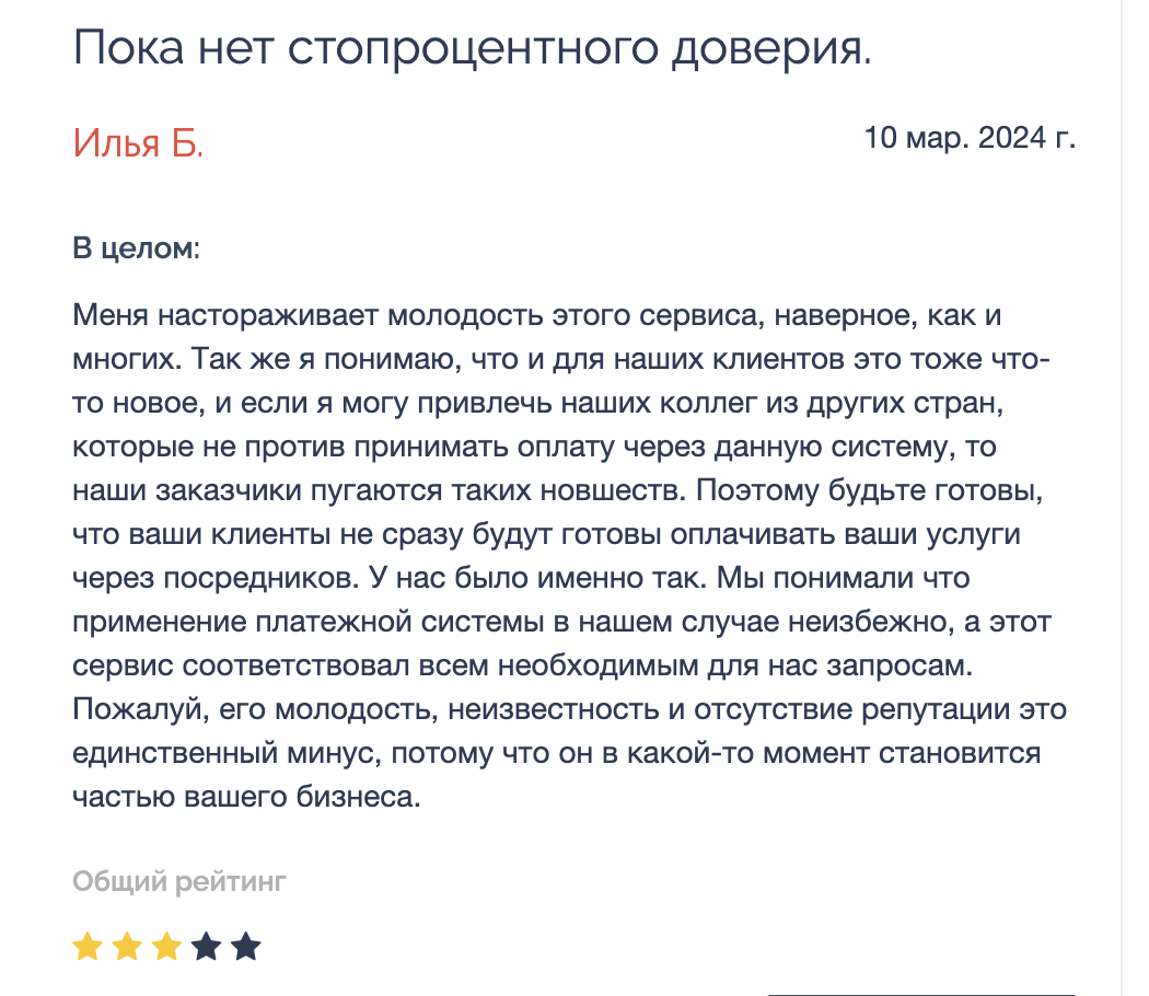 Однако в русскоязычном сегменте мнения выглядят сдержаннее. В откликах предприниматели обращают внимание на молодость сервиса и отсутствие громкого портфолио. Из-за этого некоторые клиенты по-прежнему осторожничают, предпочитают более старые и проверенные решения.