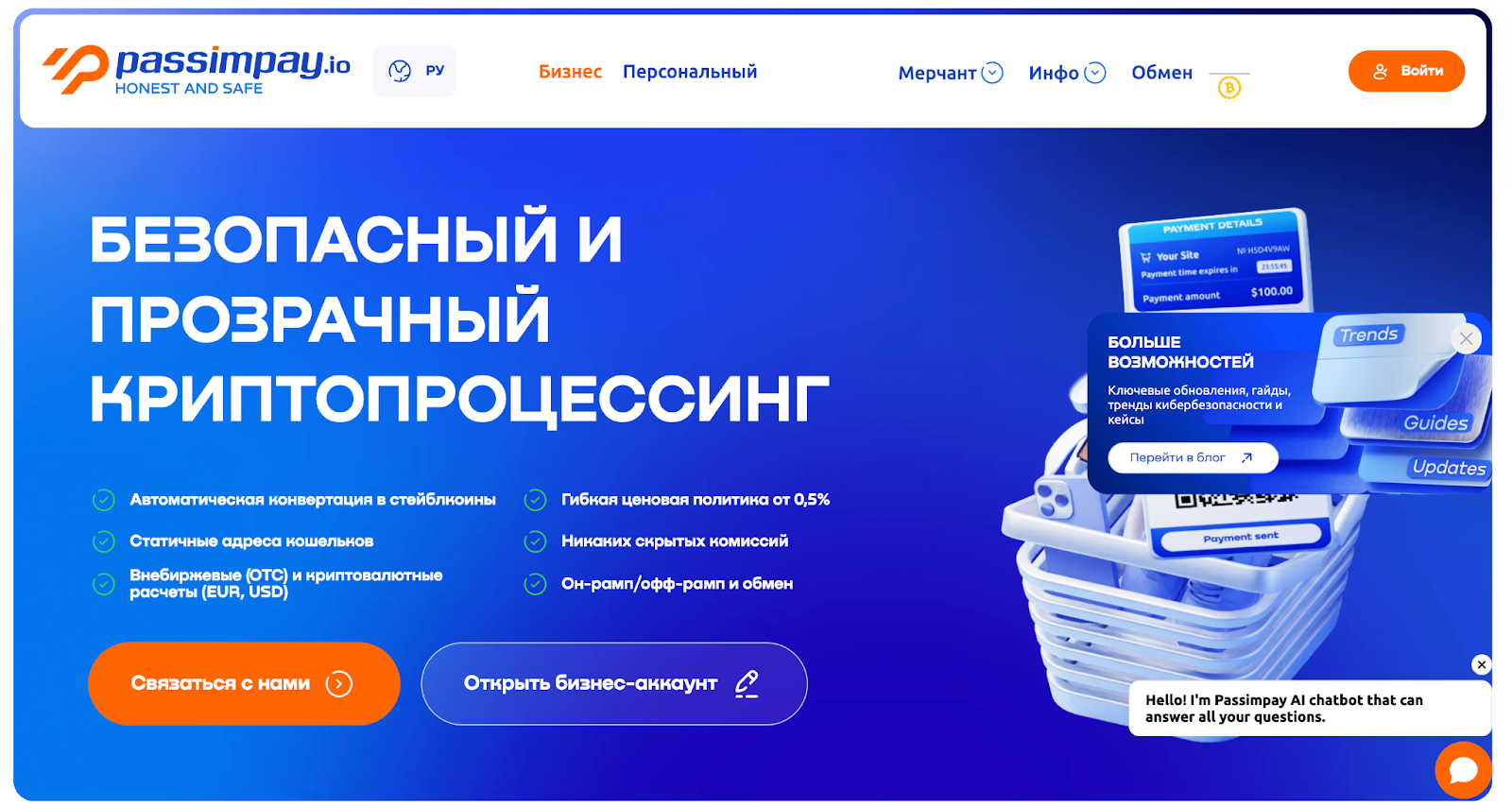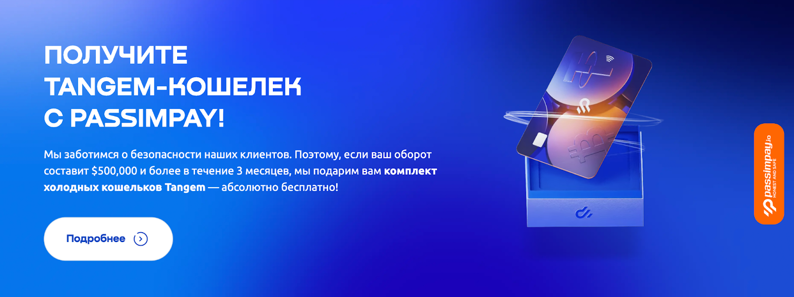 Passimpay Io заявляет о снижении комиссий до 80% при переходе на их решение, поддержке статических и динамических адресов, интеграции Tangem (предложение холодных кошельков для оборотов свыше заявленного порога) и API для автоматизации приемки платежей. Эти офферы логичны для продажи мерчантам.Однако публичная документация не всегда содержит детальную разбивку по тарифам для всех сценариев (массовые выплаты, чарджбэк и комиссии за конвертацию). Это стандартный повод запросить коммерческое предложение перед интеграцией.