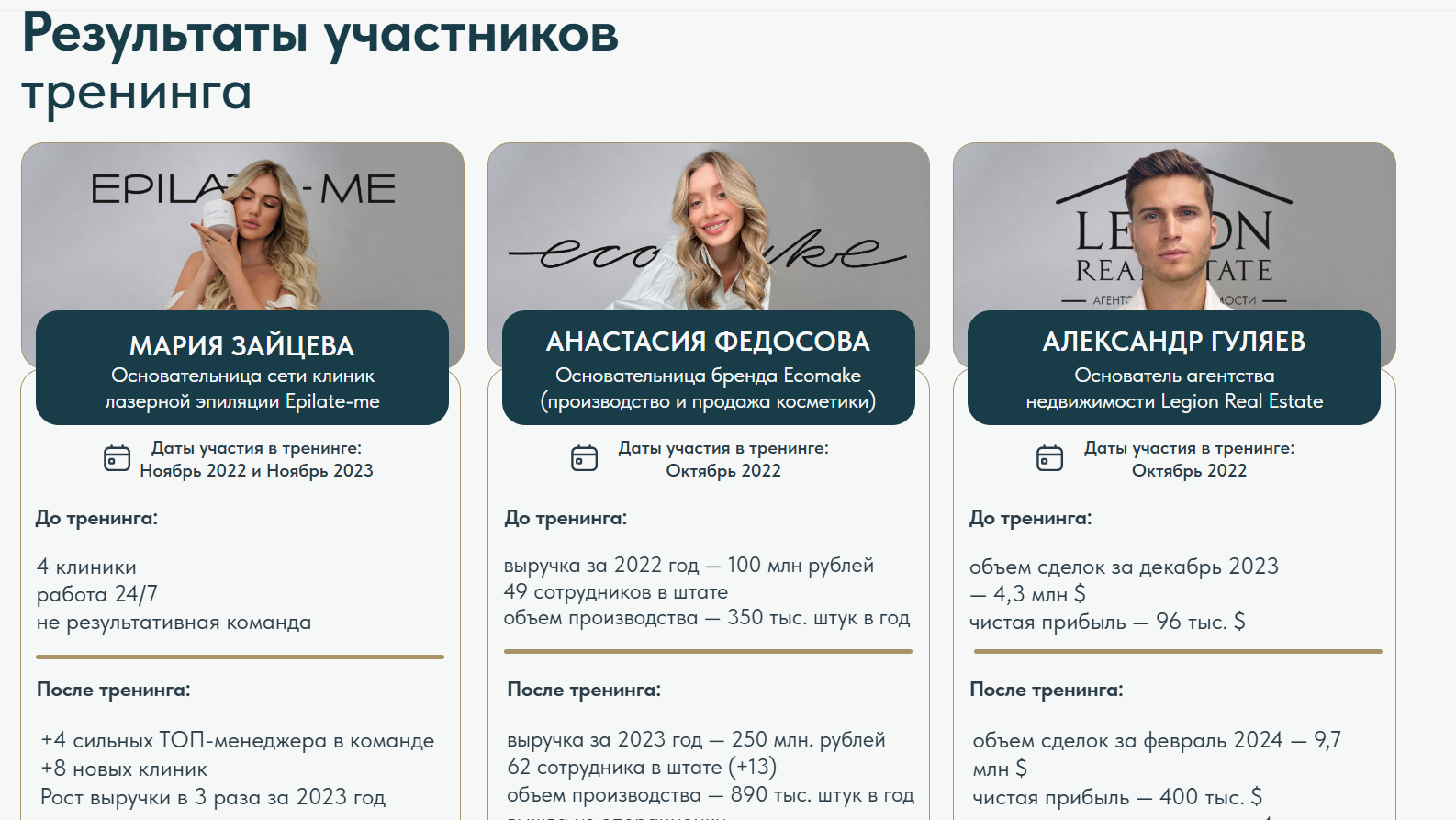 Обучение по курсу проходит в закрытом формате в группе из 5 человек. По заявлениям Гительмана, на нем дается уникальный материал. Его структура и описание есть на сайте gitelman team. Тут же выложены и результаты учеников. Все они якобы добились высоких результатов: расширили бизнес, увеличили прибыль.