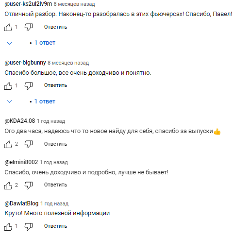 Хотя не все пользователи довольны качеством видео. Трейдер часто делает перепосевы – обновления роликов по старым темам. Под ними иногда появляются несогласные, которые отмечают скупость контента на годный материал и советы. Многим из них Павел отвечает лично, и на этом дискуссия прекращается.