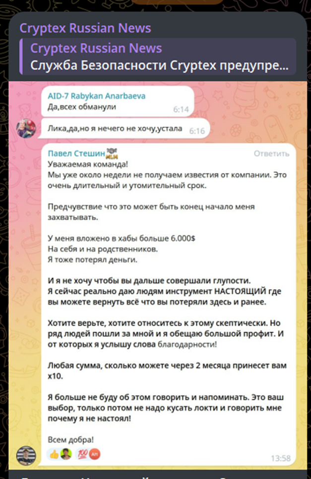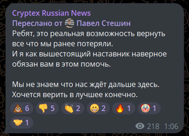 Многие клиенты упомянутых компаний получили рассылку от Павла с предложением вернуть деньги. Связано это с тем, что пользователи бирж уже некоторое время не могут вернуть собственные средства, о чем ведутся активные обсуждения во внутренних чатах.