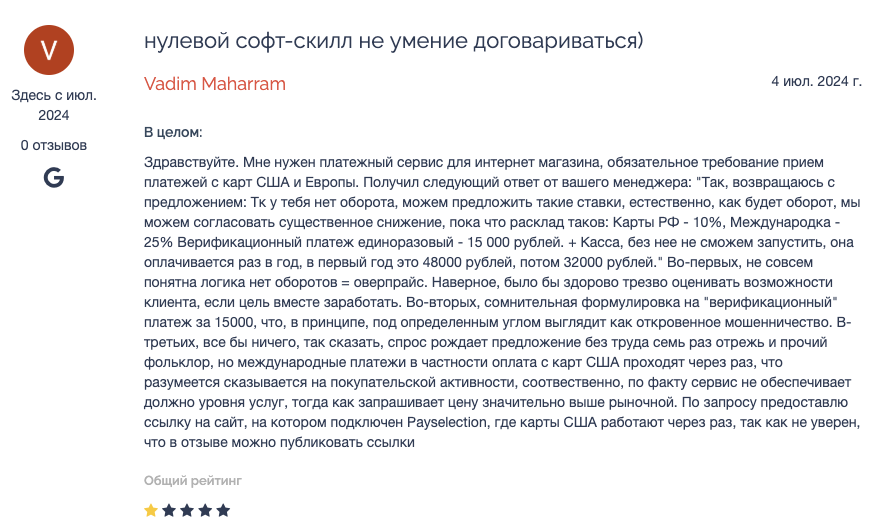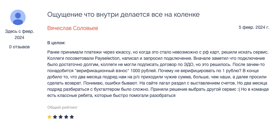 - в интернете есть много негативных отзывов о «ПейСелекшен» — в них заявлено, что работа с платформой не настолько гладкая, как заявлено в рекламных материалах;
