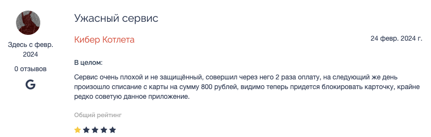 Также в отзывах о payselection com пишут, что сервис необоснованно списывает деньги с привязанной к нему карты. У кого-то в результате работы с платежной системы пропали 800 рублей, у другого 990.