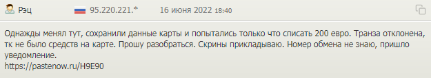 Большая часть отзывов о Paybis – отрицательные. Клиенты пишут, что платформа сохраняет данные банковской карты и пытается списать деньги. При наличии средств на счете происходит списание.