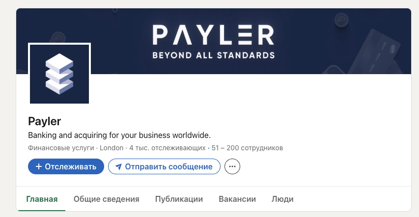 Примерно такая же ситуация и на аккаунте организации на LinkedIn. На него подписаны 4 тысячи человек. Публикаций в ленте данной страницы нет.