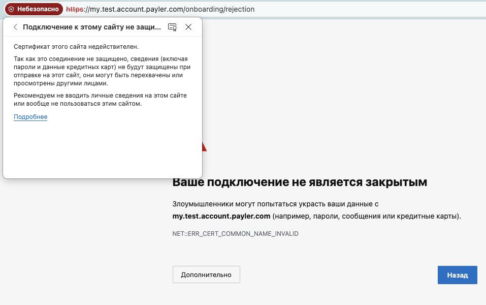Мы зарегистрировались на сайте платформы, чтобы узнать о ней подробнее. В результате, когда подтвердили аккаунт и заполнили анкету, открылась страница с предупреждением об истекшем SSL-сертификате. Когда же мы отключили проверку, отобразилась заглушка Nginx. Это говорит о том, что у платформы есть явные технические проблемы.