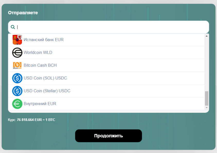 Получается, что кроме евро, никакие другие фиатные средства обменять или получить не получится. Хотя авторы уверяли, что они специализируются на этом. Вероятно, это связано с тем, что обменник создан в Италии, где местной валютой является именно евро.
