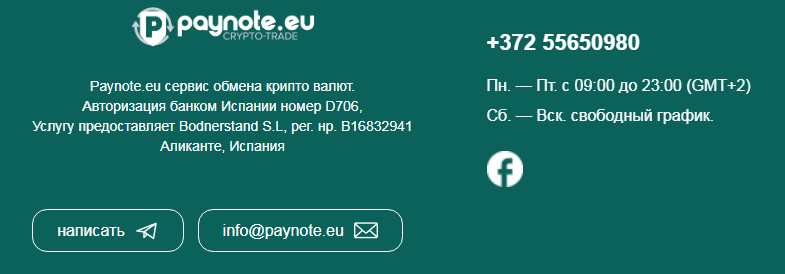Внизу страницы Paynote Eu мы нашли график работы службы поддержки. По будням менеджеры принимают с 9 до 23 часов GMT+2. По выходным они работают в свободном графике.
