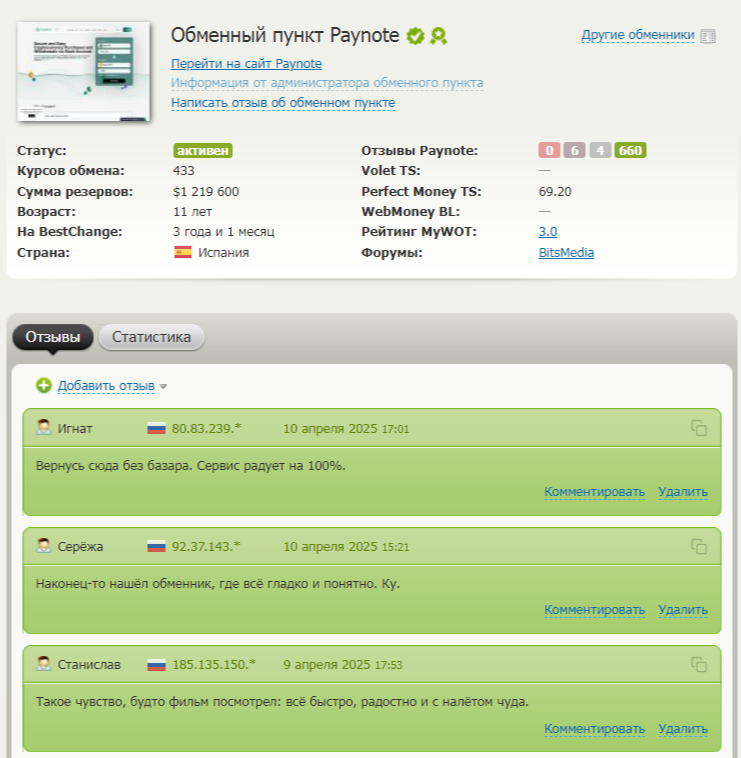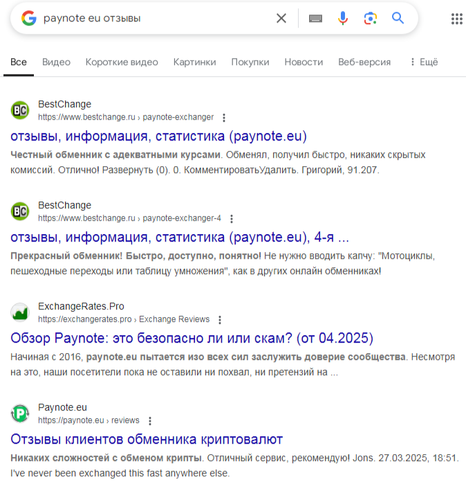 Реальные отзывы об обменнике Paynote Eu