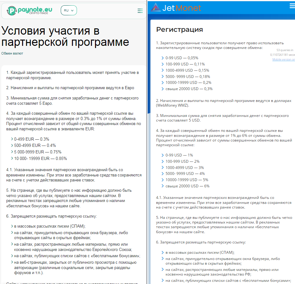 При проверке ресурса мы заметили, что эти условия реферальной программы являются шаблонными. Так, на одном скам-обменнике находятся точно такие же правила. Отличаются они лишь распределением процентного бонуса. В целом стилистика площадок одна и та же.
