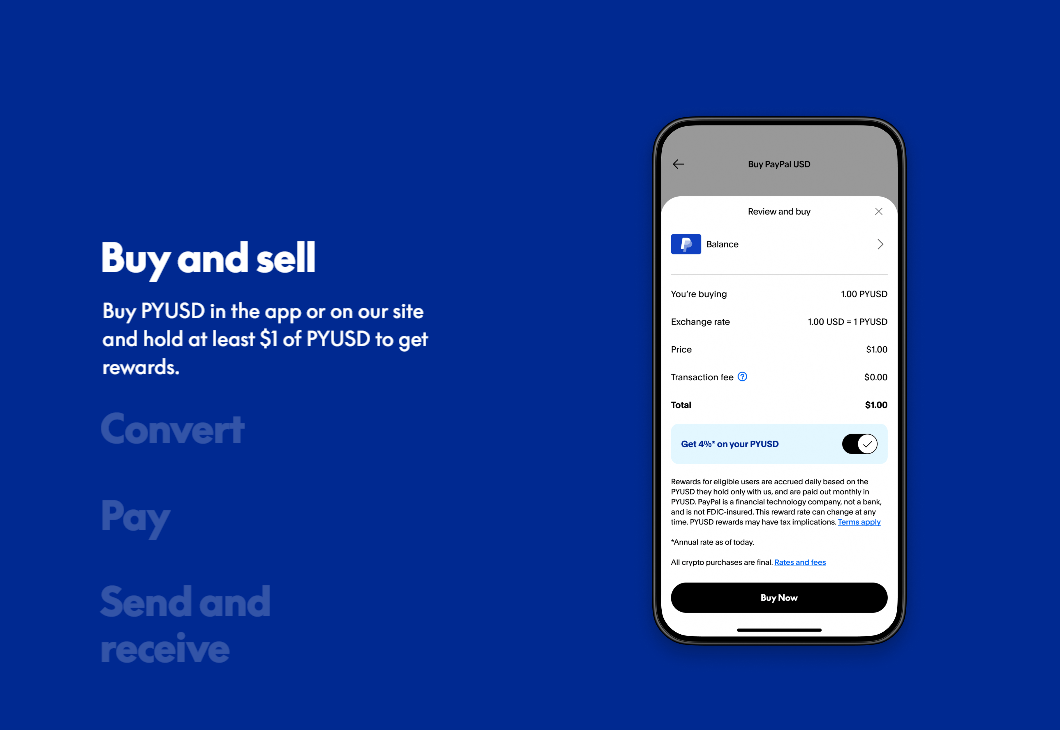PayPal мотивирует держать PYUSD, предлагая до 4% годовых за хранение в их кошельках. Это выше, чем у многих банковских депозитов, что делает токен привлекательным для сбережений.
