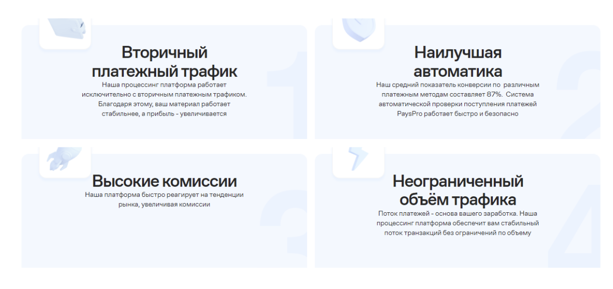 Pays Pro – сервис для заработка на процессинге. Владельцы компании обещают оптимальные комиссии и работу с неограниченным объемом платежного трафика.