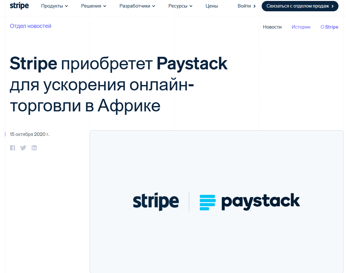 В 2020 году «Пейстек» купила американская Stripe. Это одна из крупнейших платежных компаний мира. После покупки сервис продолжил работу в Африке. Для разработчиков есть API. Можно встроить прием платежей на сайт или в приложение. Компания выпустила PoS-терминалы для оффлайн-точек.