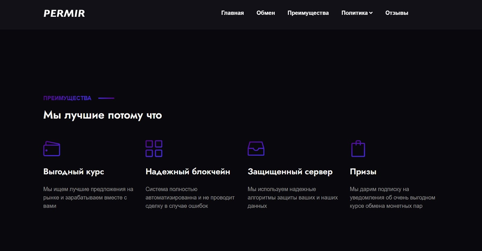 Permir – обменник криптовалют, объединяющий в себе пункт обмена в режиме онлайн и место для торговли криптоактивами. Официальный сайт поражает минимализмом и отсутствием информации, а история компании на проверку оказывается поддельной. Разбираемся в работе обменника и стоит ли доверять ему свои деньги.