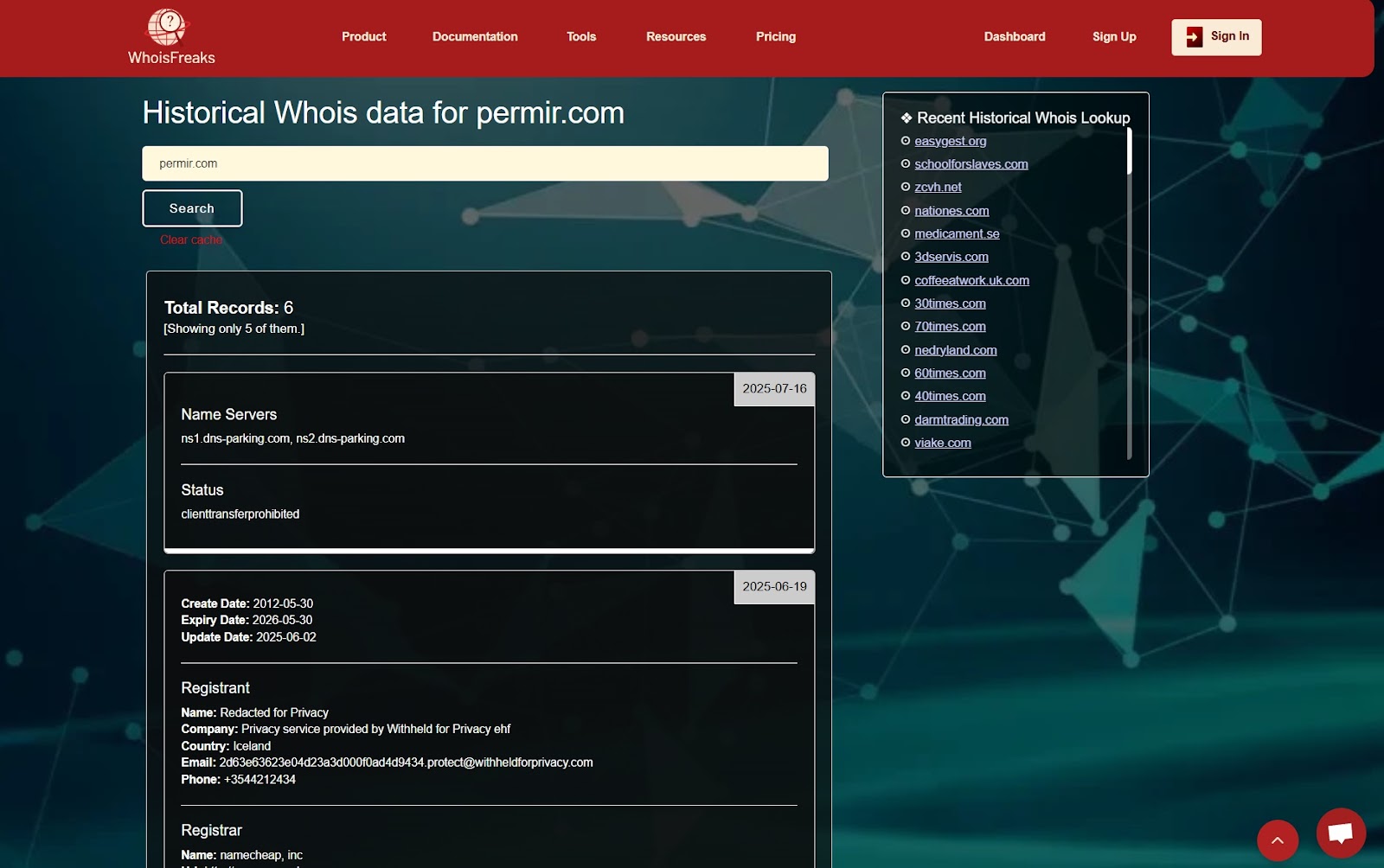 Проверка по WhoIs показала, что домен permir com был зарегистрирован в 2012 году. При этом старт деятельности на сайте указан как 2022. Более глубокая проверка истории доменной зоны установила, что URL был перекуплен в июне 2025 года.