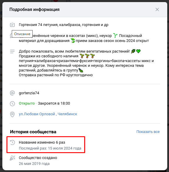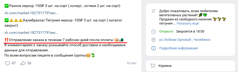 Группа появилась в 2019 году, а к ноябрю 2025 собрала почти 30 тысяч подписчиков. Кто стоит за сообществом — неизвестно. По слухам, всем занимается женщина по имени Наталья: она публикует посты и принимает заказы. В ленте регулярно выкладывают фото рассады — часть уже продают, часть только готовят к продаже. Комментарии под постами закрыты, можно только ставить лайки. В описании есть адрес магазина в Челябинске, но проверить его подлинность наша редакция не смогла.
