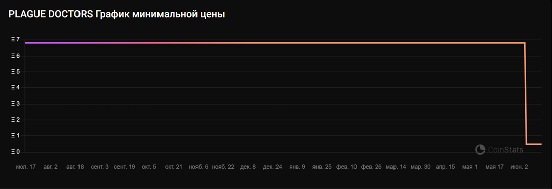 На данный момент цена Plague doctor NFT tg составляет 0,5 TON. До недавнего времени этот показатель составлял 6,8 TON. Таким образом, вкладываться в проект оказывается не очень перспективно, так как за короткий срок стоимость актива рухнула в несколько раз. В ТГ NFT Plague doctor каких-либо подробностей по данному поводу не раскрывалось и ситуация не комментировалась. Купить НФТ сейчас можно на LooksRare, OpenSea, Uniswap и прочих платформах. Проверка показывает, что за последние несколько суток активы не продавались и не покупались.