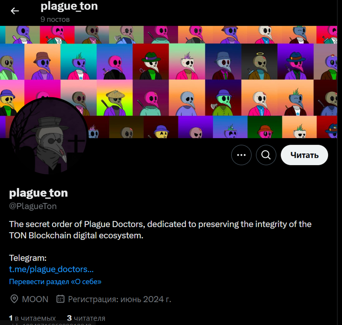 На данный момент в Телеграме «NFT Чумной доктор» имеется только 127 подписчиков. На последних постах более тысячи просмотров, что говорит о большом наполнении платформы во времена активности. Комментарии открыты для желающих. Канал появился в июне 2024 года.