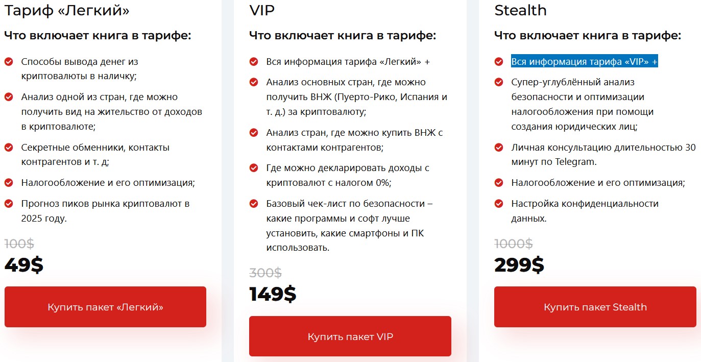 Книга распространяется на платной основе. Ее базовая версия стоит $49, за которые пользователям предлагают только базовую версию. За более дорогие версии за $149 и $299 обещает расширенные версии с информацией о получении ВНЖ, уплате налогов и покупке недвижимости за границей после фиксации прибыли. В интернете уже можно найти сливы План выхода из Крипто Что Когда и Как от Богатейшего Ди.