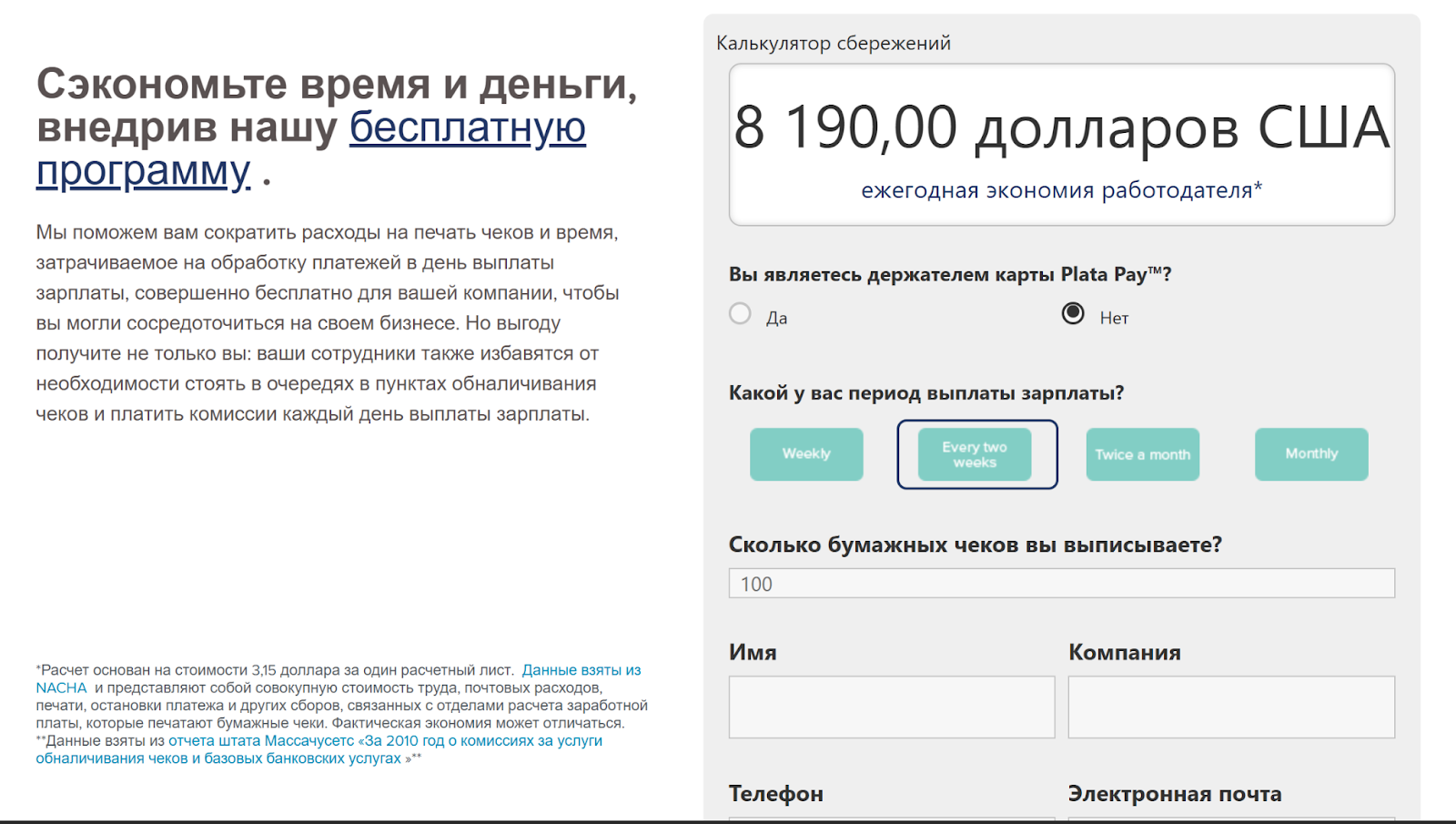 Plata Pay — компания, ее основной задачей является обеспечить владельцам бизнеса быстрые начисления заработной платы без бумажной волокиты. Сервис предоставляет платежные карты VISA, которыми можно расплачиваться по всему миру. Организация начала работу в 2020 году, но отзывов о ней очень мало. В обзоре расскажем об условиях работы с PlataPay и выясним, стоит ли ей доверять.