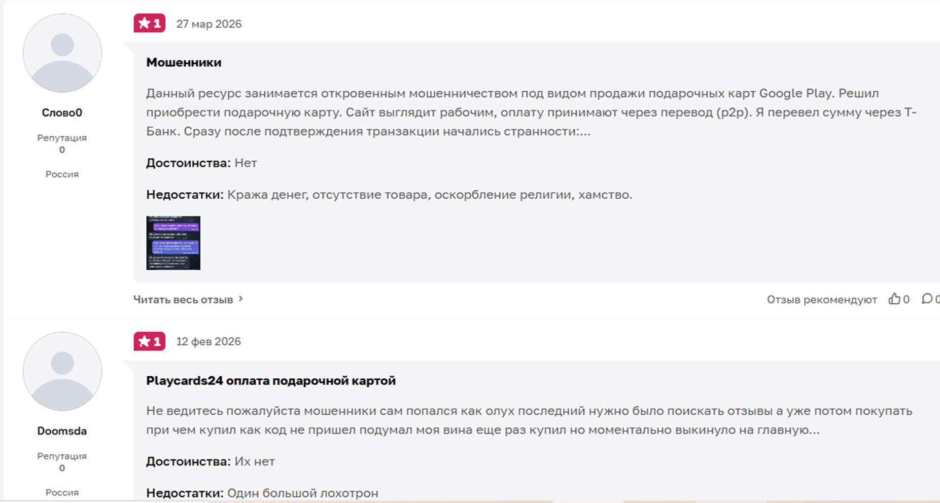 Пользователи массово жалуются на Playcards24 sbs и обвиняют платформу в мошенничестве. Сценарий сотрудничества во всех случаях идентичен. После перевода суммы за карту, менеджер пишет, что такого номинала нет в наличии и следует доплатить за другую карту.