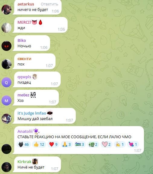 Под некоторыми постами очень много реакций и комментариев, но там почти всегда один спам. Аудитория не совсем адекватная. Вероятно, ЦА проекта — школьники до 18 лет, которые приходят участвовать в розыгрышах.