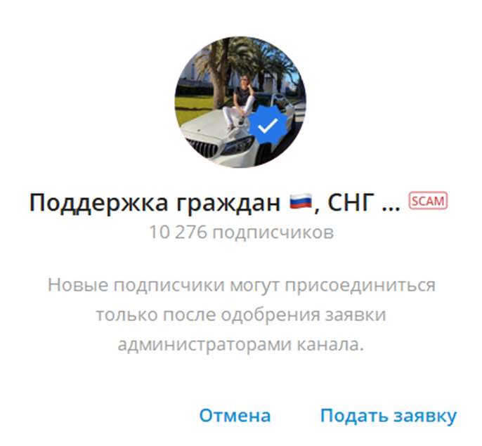 Рассматривая телеграм-канал «Поддержка граждан СНГ», мы пришли к выводу, что он мошеннический. Это подтверждено несколькими признаками: