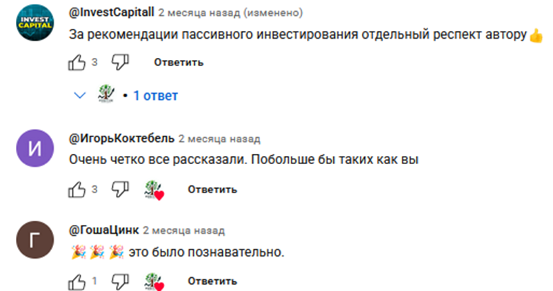 Отзывов об инвесторе Денисе Федотове и его блоге Позитив Инвестментс в сети найти не удалось. Есть только комментарии к роликам на Ютубе. В целом отзывы положительные, нет никаких жалоб о выманивании денег или навязывании платных услуг.