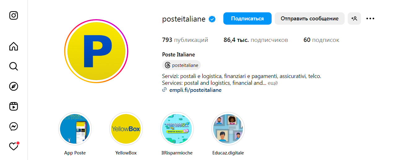 В социальных сетях компания регулярно публикует новости, обновления функциональности и разъяснительные материалы. Посты выходят на итальянском языке и ориентированы в первую очередь на внутреннюю аудиторию.