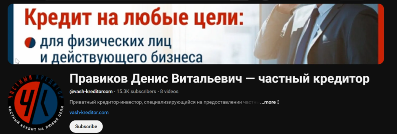 Написать Правикову Денису Витальевичу можно в личных сообщениях или же перейти на его сайт Vash-creditor.com, где также есть возможность отправить заявку онлайн. Также у мужчины есть собственный Ютуб-канал, где его партнеры в роликах рассказывают о нюансах кредитования и финансовой грамотности. Но подписчиков на канале не так много, хотя взять кредит у частного кредитора Правикова Дениса Витальевича можно даже написав в комментарии под обзором.