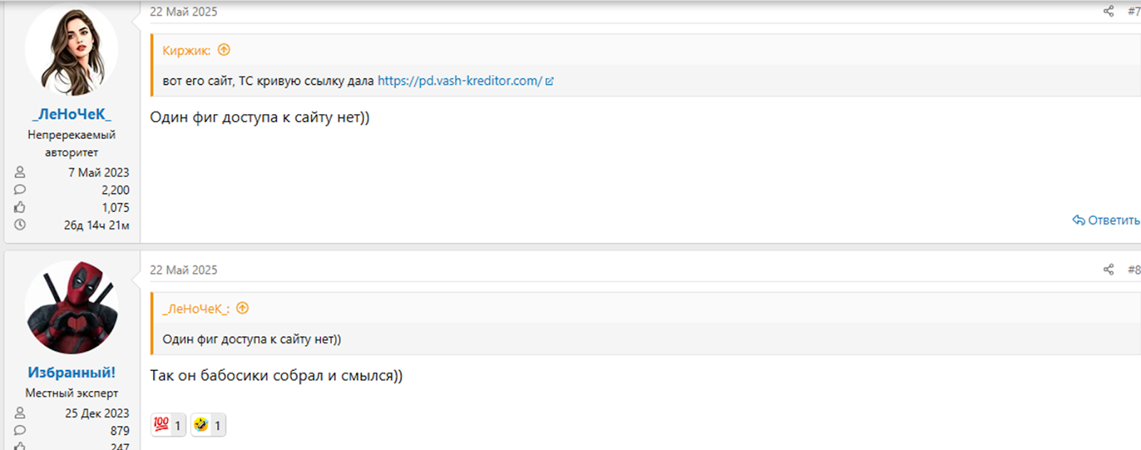 Деятельность Правикова Дениса Витальевича – развод. Главное доказательство этому – внесение сайта Vash-creditor.com в черный список ЦБ РФ как мошеннического проекта и его последующая блокировка.