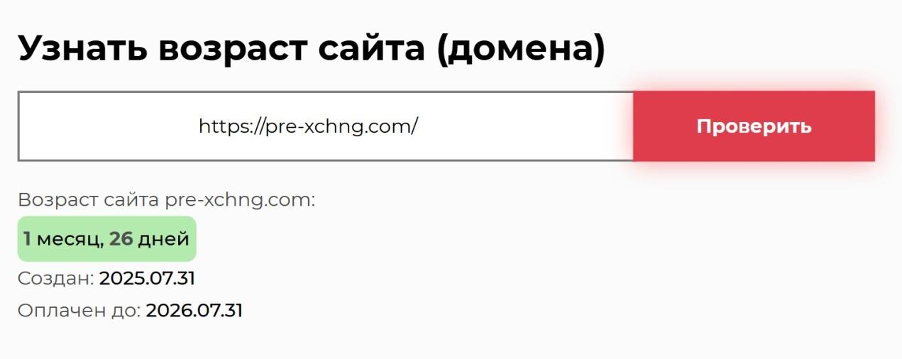 Проверка домена сайта обменника показывает, что он зарегистрирован всего месяц назад, а не в 2020-м. К тому же за месяц получить такой результат, как указан в статистике, невозможно.