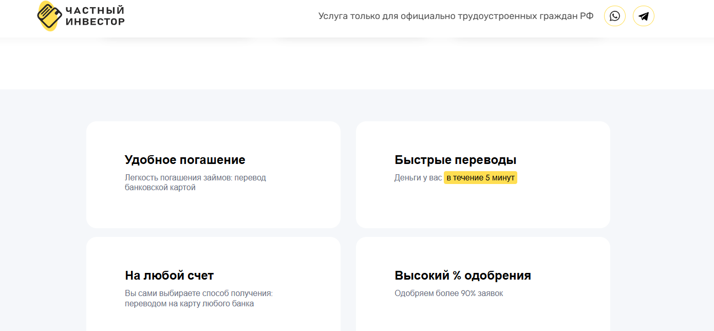 По итогам анализа платформы Pri Invest ru, которая предлагает быстро взять микрозайм до 100 000 рублей, можно выделить следующие минусы: