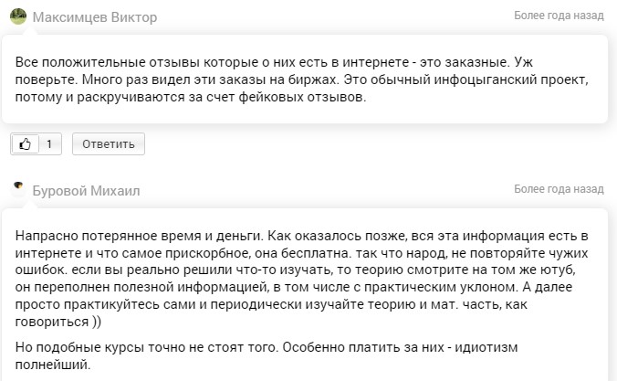 А теперь представьте, что на месте шаблонных положительных отзывов — некупленный реальный негатив, а вместо реального обучения — бесполезная информация. Тогда да, уже не так горит желание быть «учеником» этой «школы».