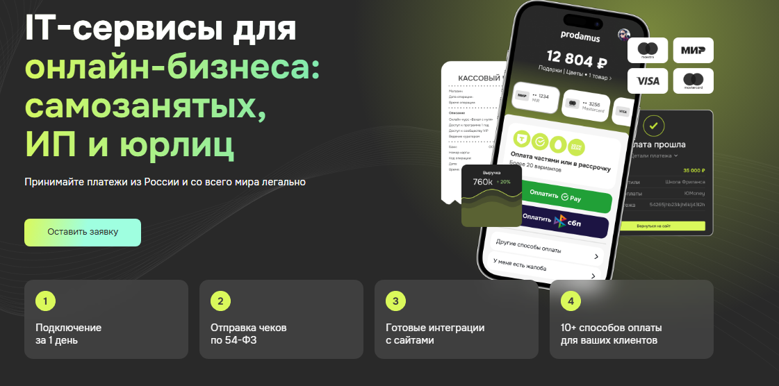 Prodamus ru — это российская платежная система, которая работает как шлюз, онлайн-касса и инструмент для оформления подписок или рассрочек. По сути, предприниматель получает универсальное решение: клиенты платят так, как им удобно, а система сама пробивает чек и отправляет его в налоговую, принимает платеж на расчетный счет.
